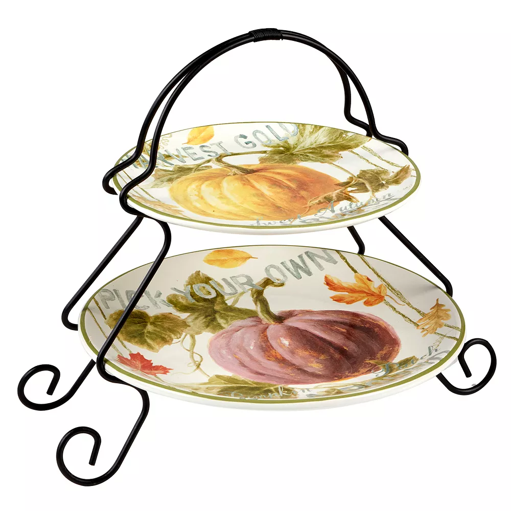 Create a lovely tablescape fit for any fall meal with this Certified International Autumn Harvest tiered sever.
