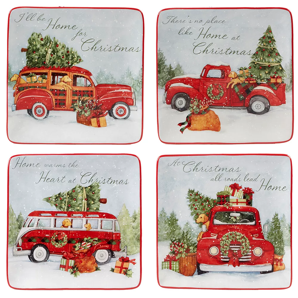 Family will love to gather around the dinner table when you set it with these nostalgic Certified International Home for Christmas dessert plates.