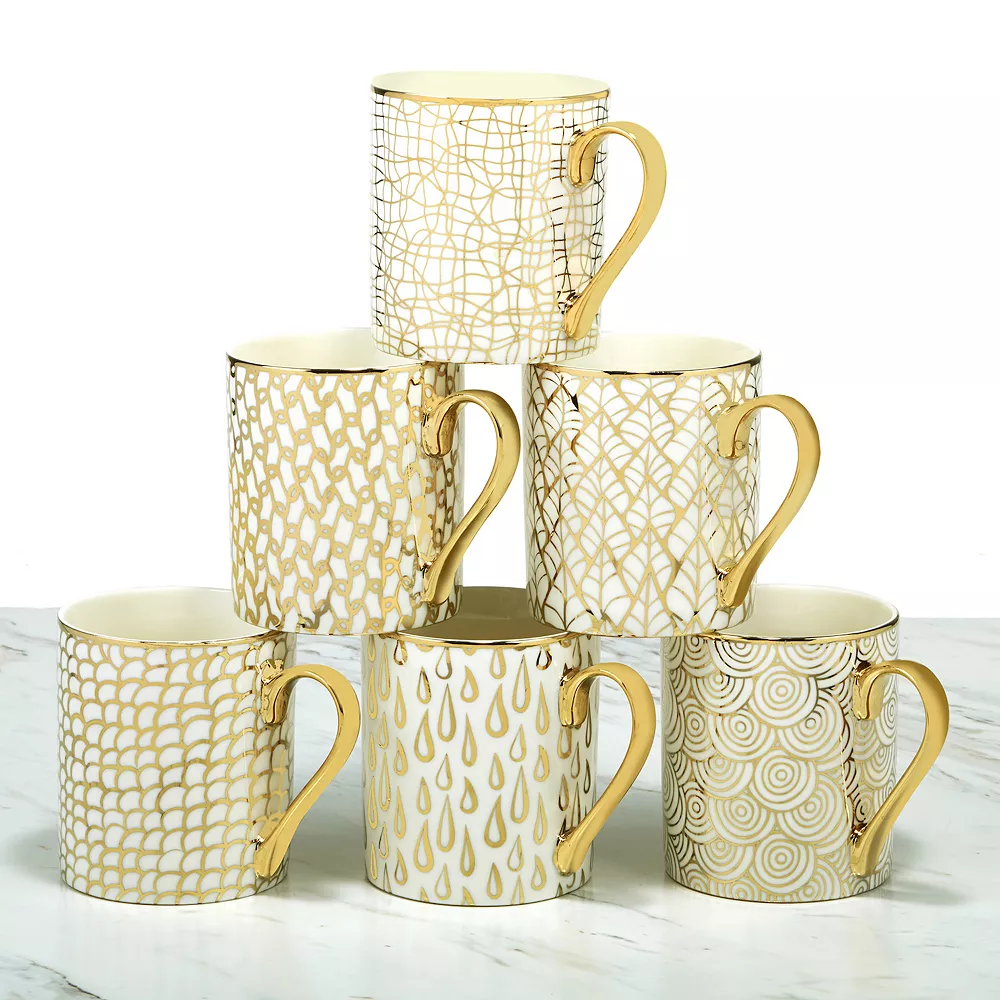 Give your dinnerware collection a head-turning makeover with these Certified International Mosaic mugs, featuring varying mix-and-match patterns in a striking gold hue.